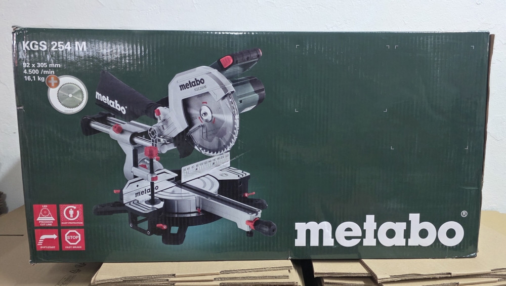 - Lieferumfang: Metabo Kapp- und Gehrungssäge Set KGS 254 M (613254900) / Sägeblatt "Precision cut wood - classic", Hartmetall-Sägeblatt, 2 Tischverbreiterungen, Ablänganschlag, Materialklemme, Sägeblattwechsel-Werkzeug, Kabelaufwicklung, Spänefangsack